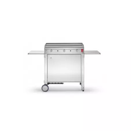 Ce chariot permet de déplacer la plancha facilement. Ses deux tablettes permettent aussi de déposer des aliments et de cuisiner plus aisément.